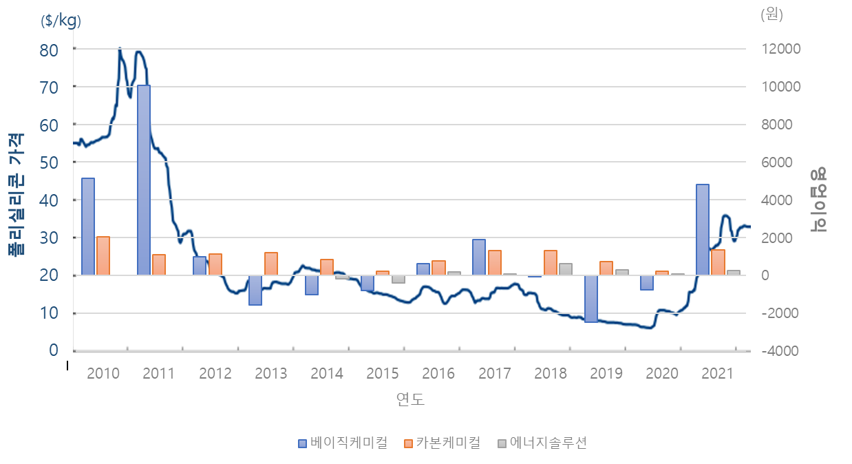 - 베이직케미컬 부문: 폴리실리콘, 과산화수소, TDI 등 (매출비중 38%)