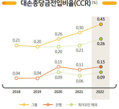 - 22년 연결기준 Credit cost는 총 여신대비 43bp.