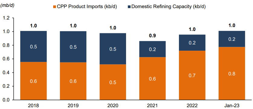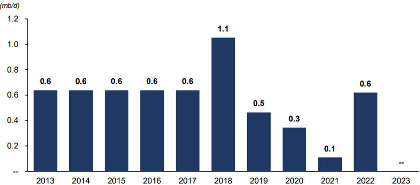 - 석유제품 수요가 지속 증가하여 23년도에도 소폭 증가할 것(~1.6mb/d)