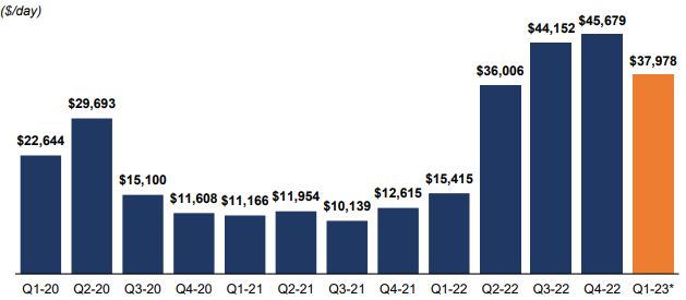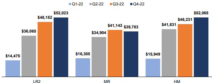 - 분기 평균 TCE($/day)는 22년 연중으로 지속 우상향 추세였음
