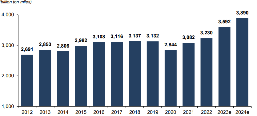 - 유럽의 러시아산 석유제품 금수조치로 인한 톤마일 증가