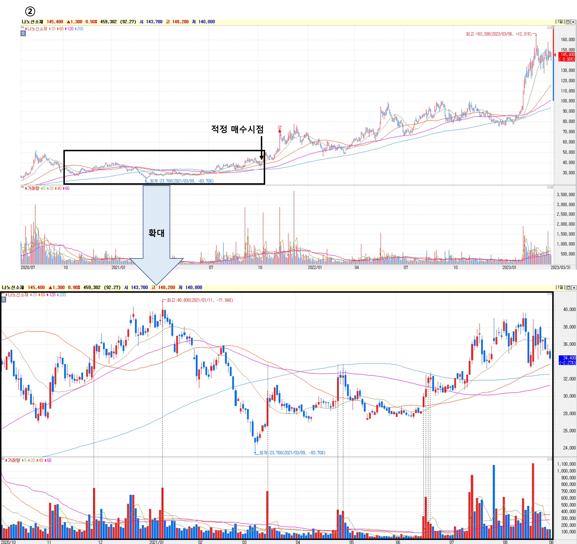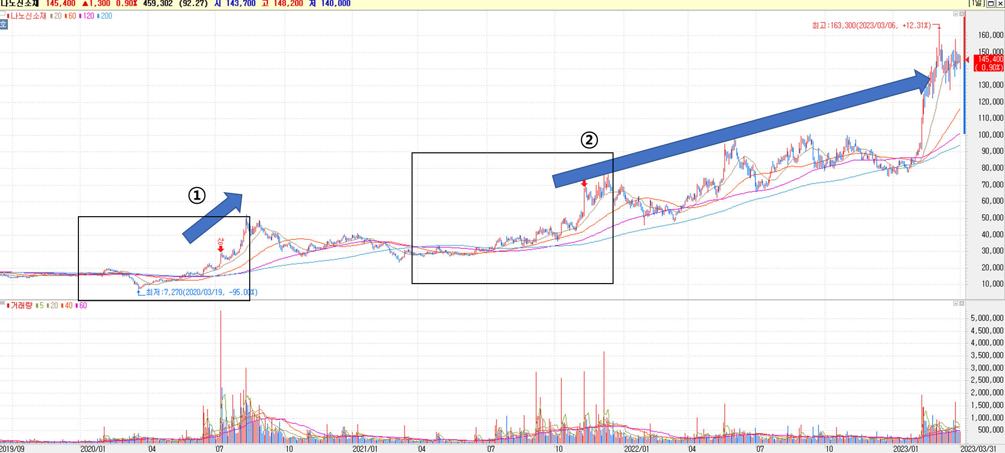 나노신소재 주가 차트 (2020년~현재) 4 - 1. 2020년 상승 전