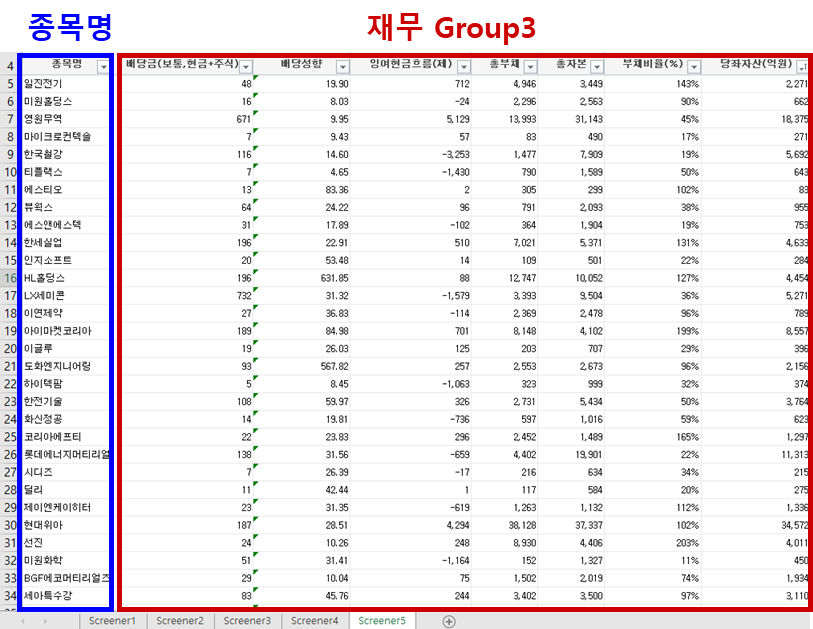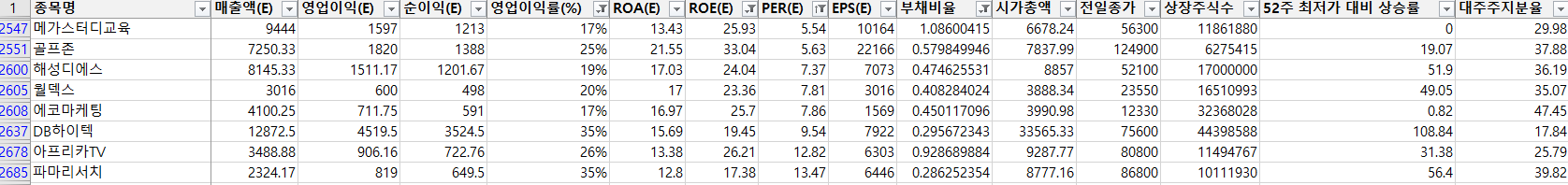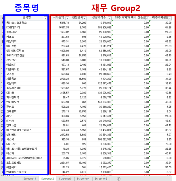 이제 자유롭게 원하는 재무상태의 기업을 필터링할 수 있다.